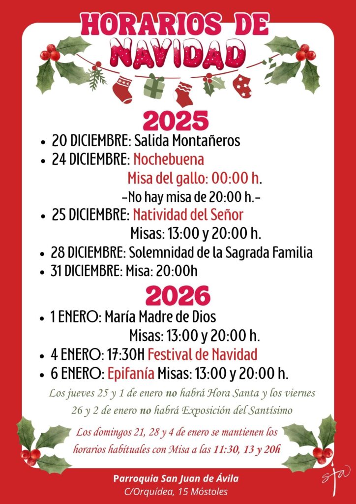Disfruta de la Navidad 2025 y el Año Nuevo 2026 en la parroquia, a continuación los horarios.