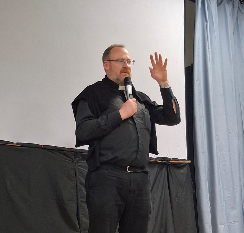 Después de la comida con la familia parroquial, mientras los más pequeños tenían juegos en el jardín, vimos la película de Los Domingos que al terminar generó un interesante debate.