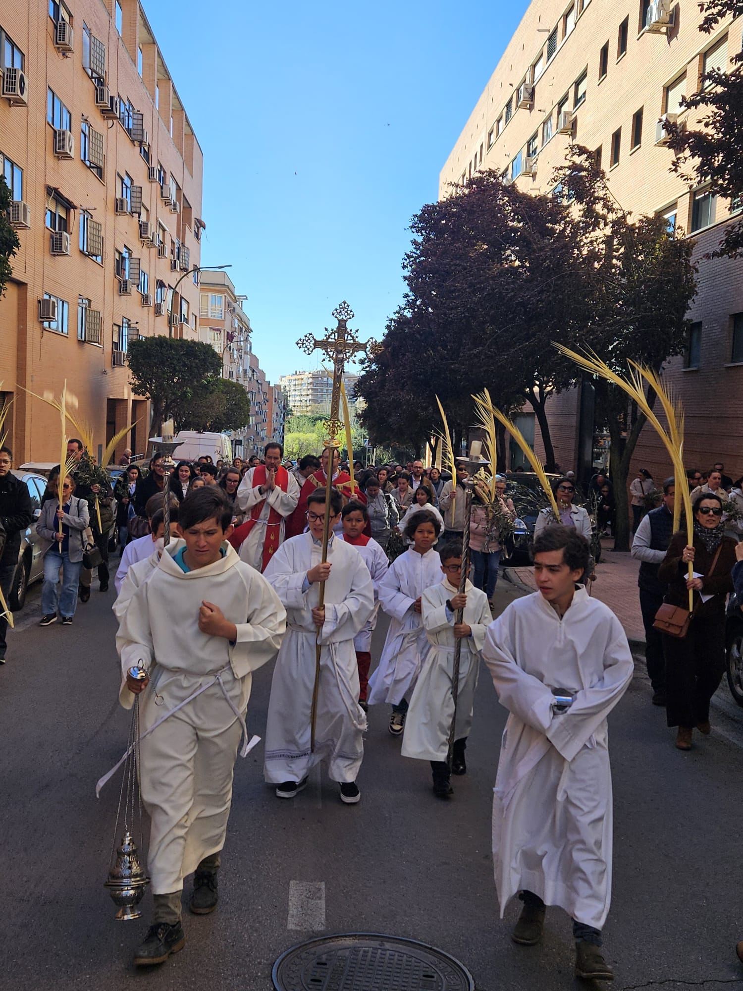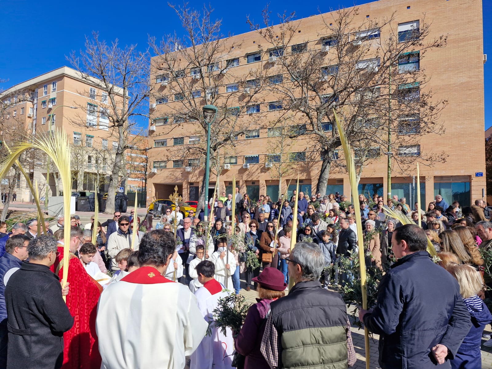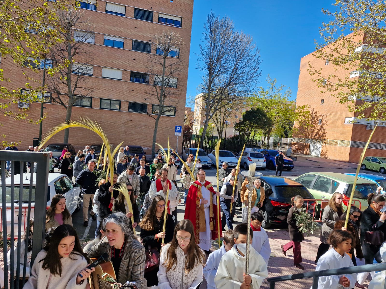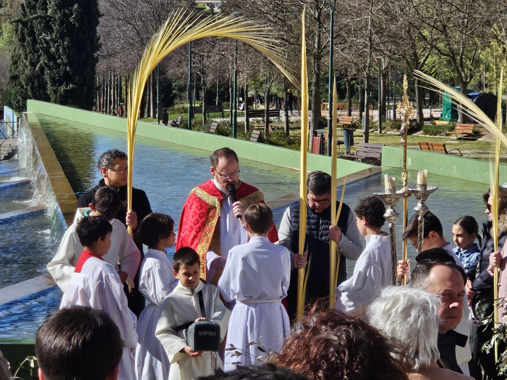 El domingo 29 de marzo de 2026, Domingo de Ramos, comenzamos la Semana Santa con la bendición de ramos y la primera lectura para continuar con la procesión hasta la iglesia que estuvo acompañada por los acólitos, el coro y muchos fieles de la parroquia con sus ramos.