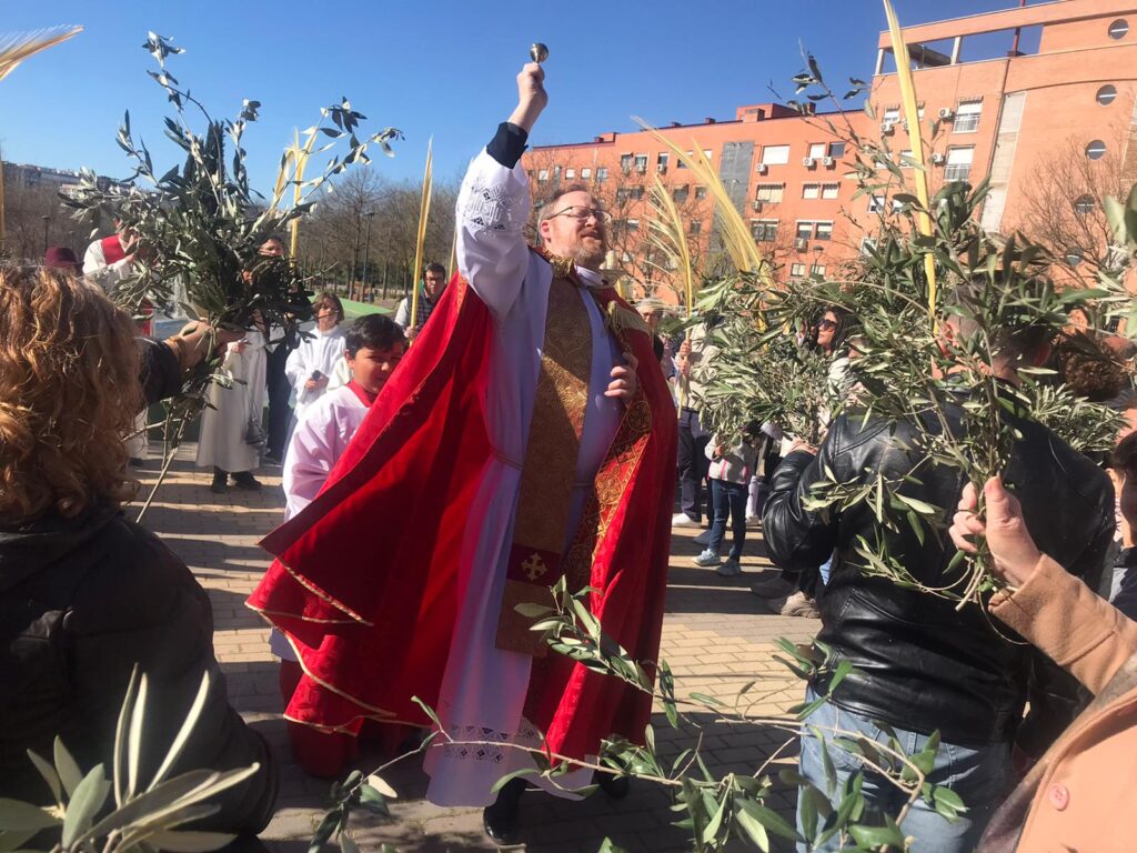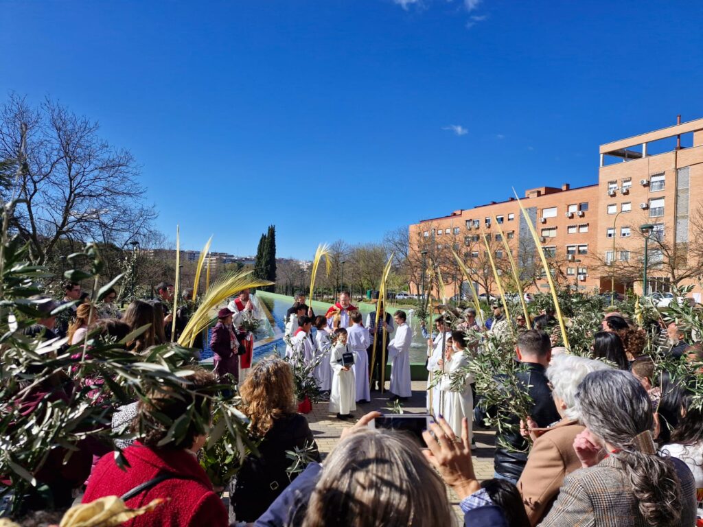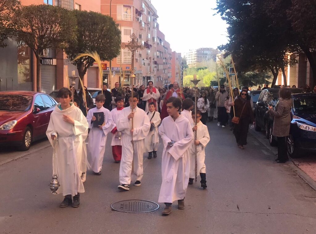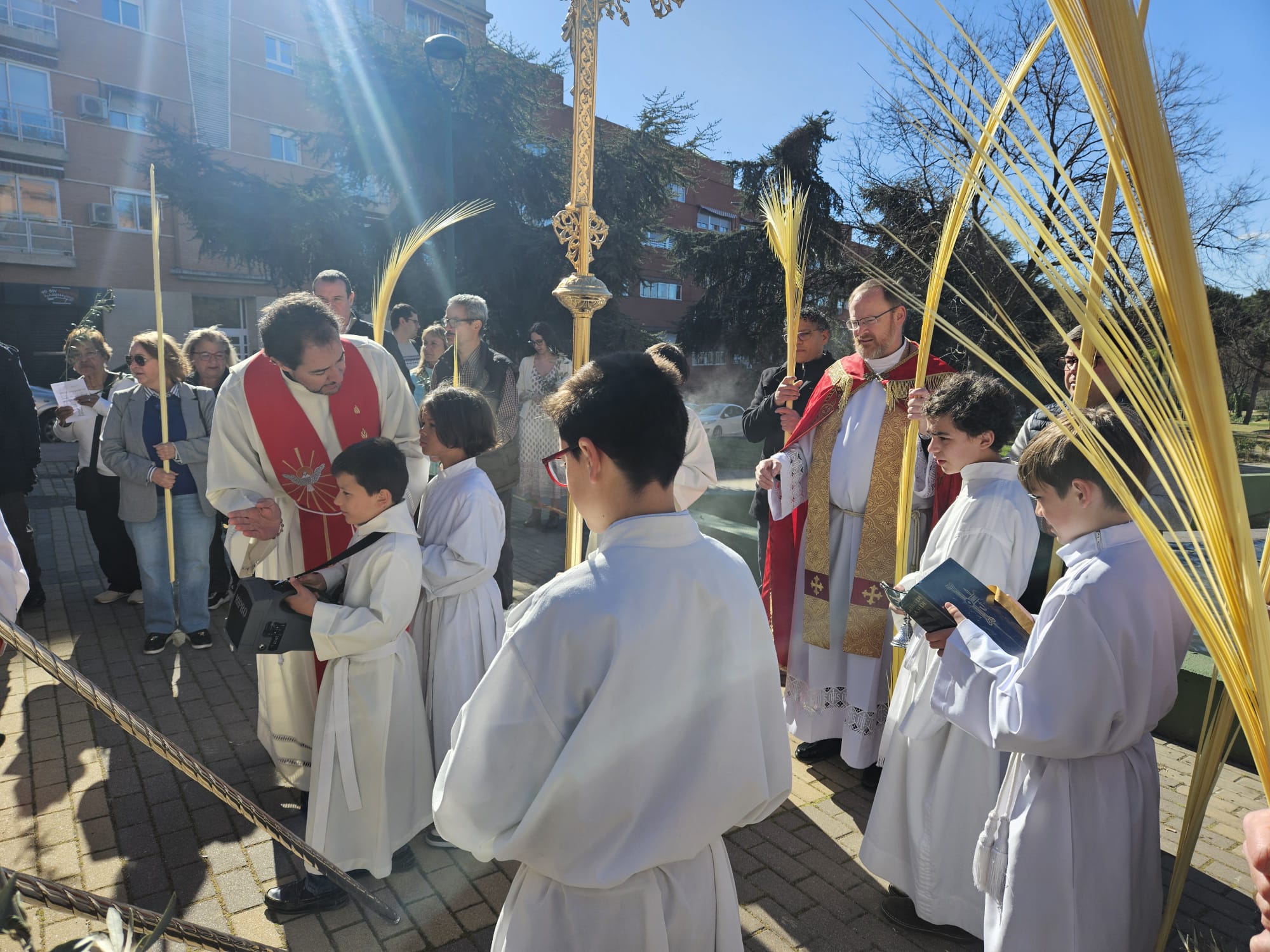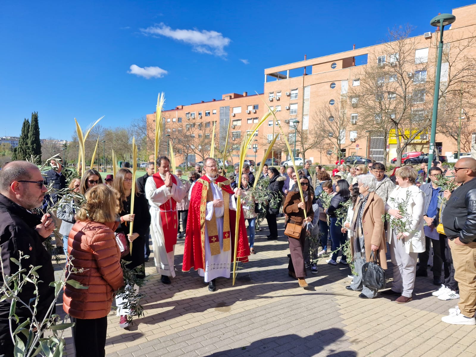El domingo 29 de marzo de 2026, Domingo de Ramos, comenzamos la Semana Santa con la bendición de ramos y la primera lectura para continuar con la procesión hasta la iglesia que estuvo acompañada por los acólitos, el coro y muchos fieles de la parroquia con sus ramos.
