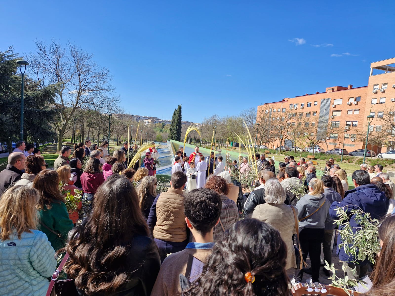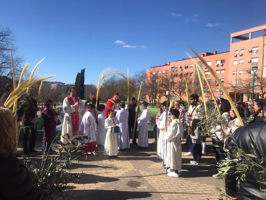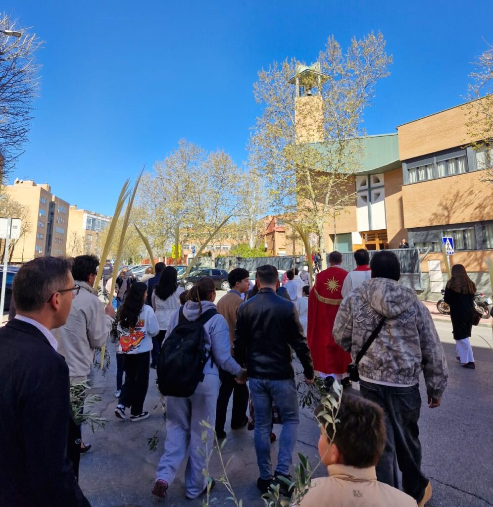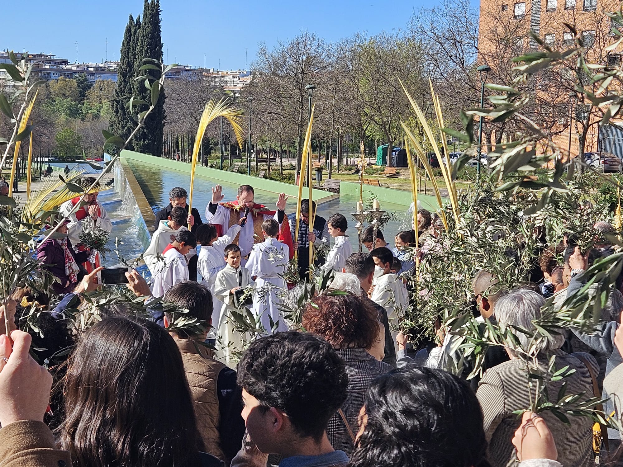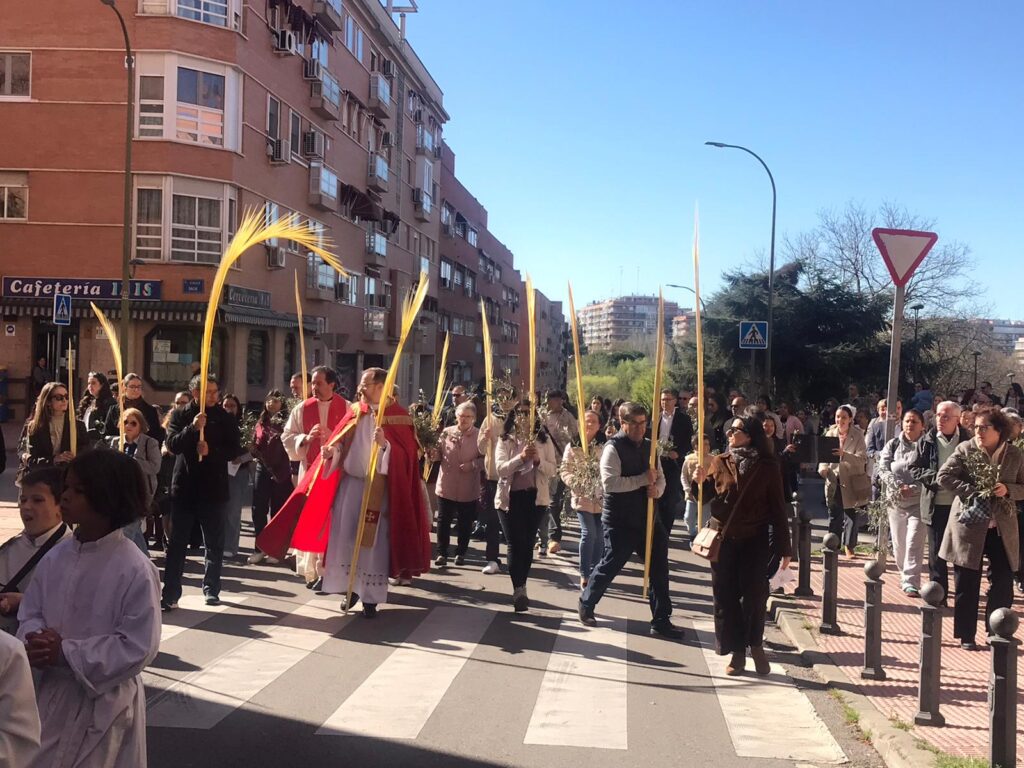 El domingo 29 de marzo de 2026, Domingo de Ramos, comenzamos la Semana Santa con la bendición de ramos y la primera lectura para continuar con la procesión hasta la iglesia que estuvo acompañada por los acólitos, el coro y muchos fieles de la parroquia con sus ramos.