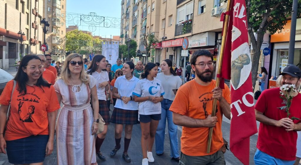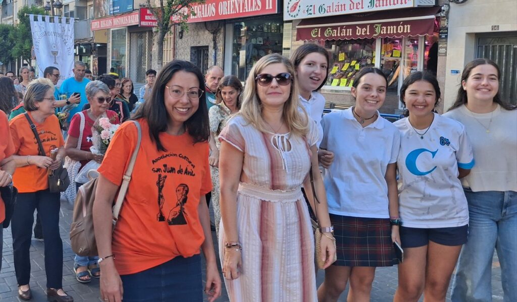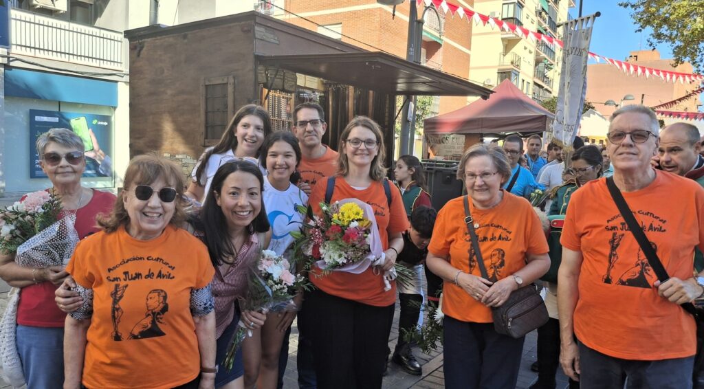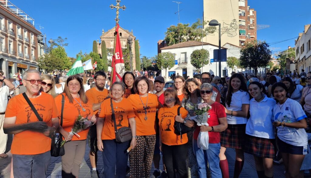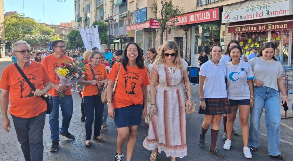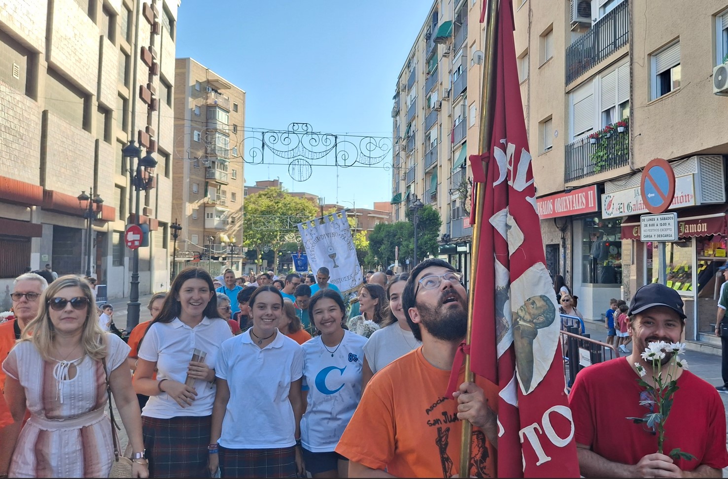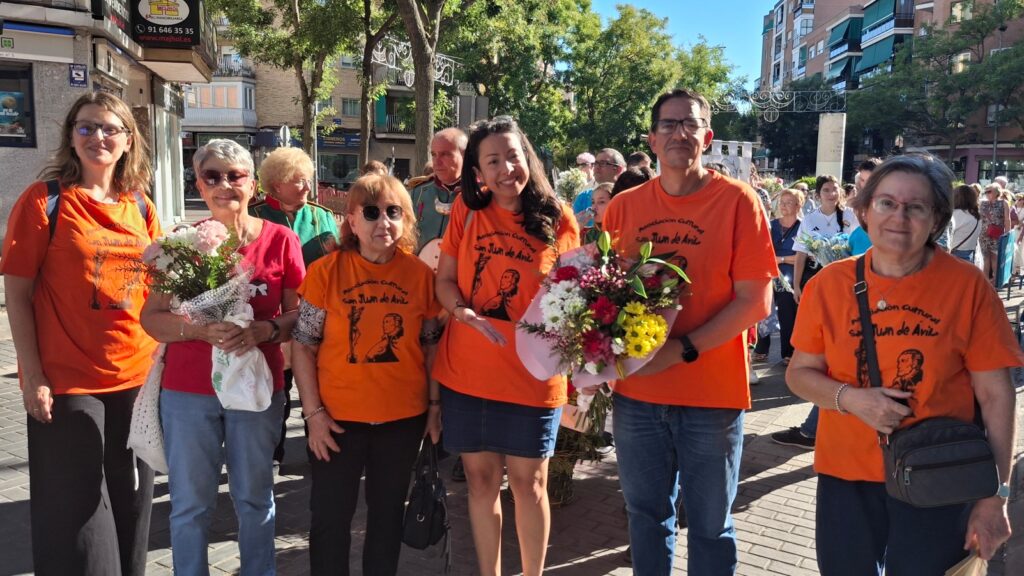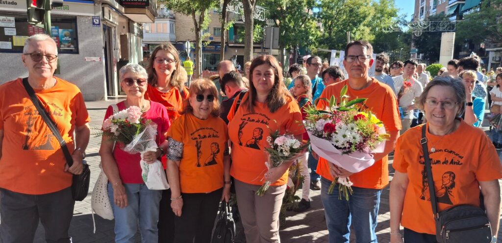 Nuestra parroquia se unió a la colorida procesión de grupos de distintas peñas, casas regionales, parroquias, asociaciones y personas que a título particular llevaban su flor a la Virgen. La Asociación Cultural San Juan de Ávila aportó un precioso ramo en nombre de todos.