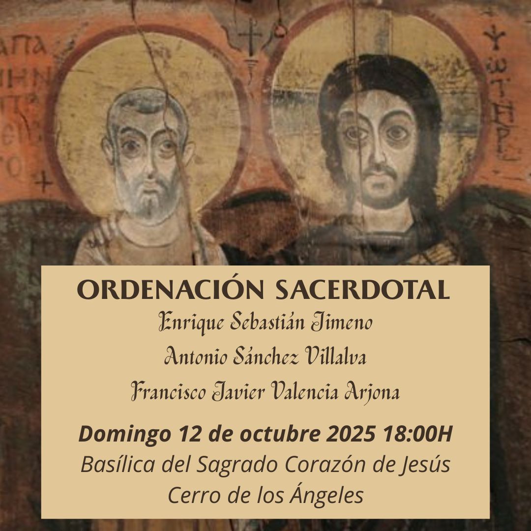 El próximo 12 de octubre de 2025 a las 18:00H, D. m serán ordenados sacerdotes por nuestro obispo D. Ginés García Beltrán: