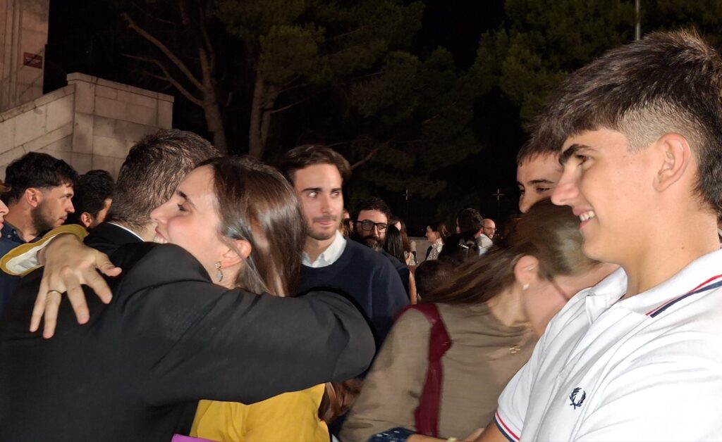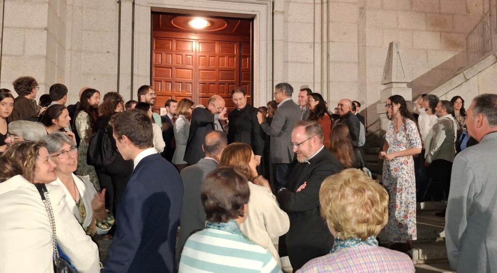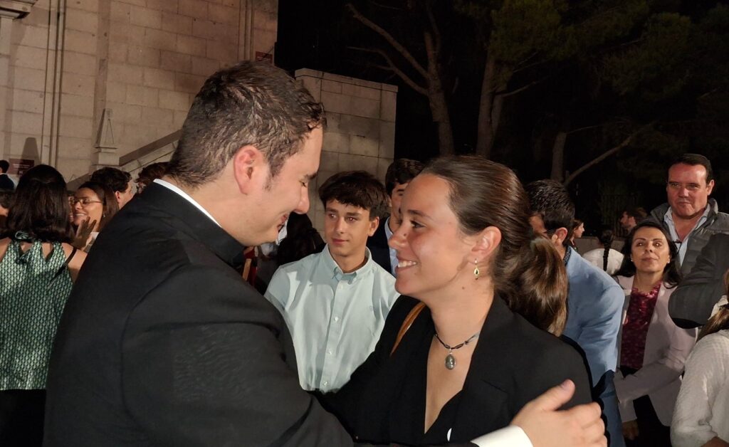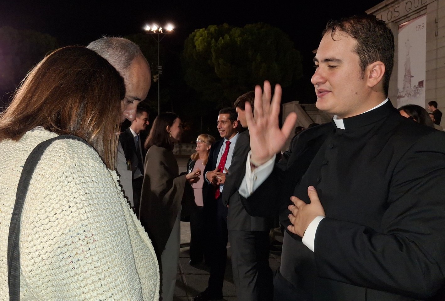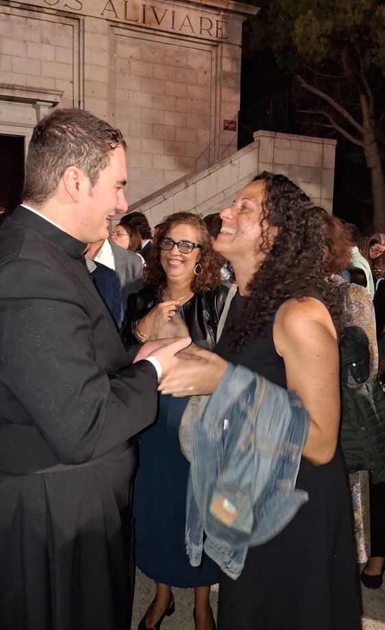 Después de la ceremonia todos esperamos a los nuevos sacerdotes, en especial a Enrique que ha estado en la parroquia San Juan de Ávila hasta agosto de 2025. En la explanada hubo tiempo de darles un abrazo y compartir unos minutos en este día tan feliz.
