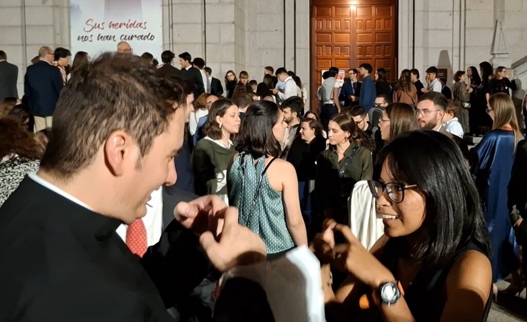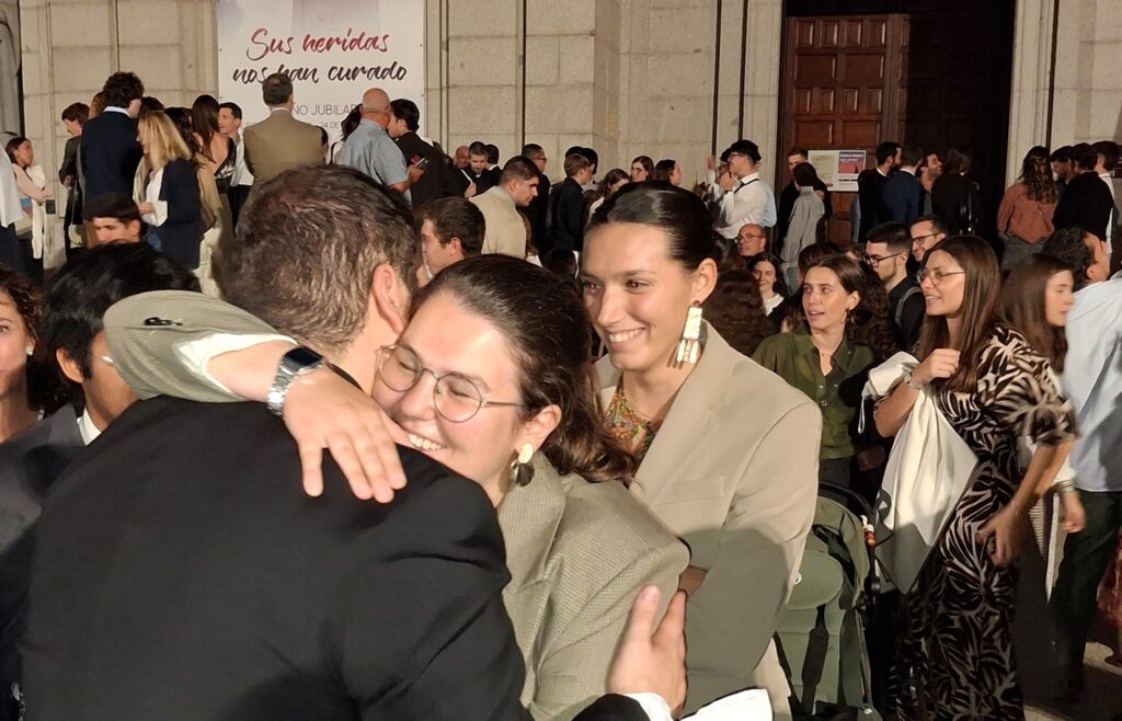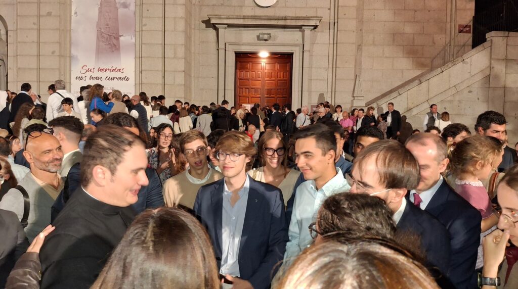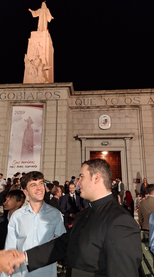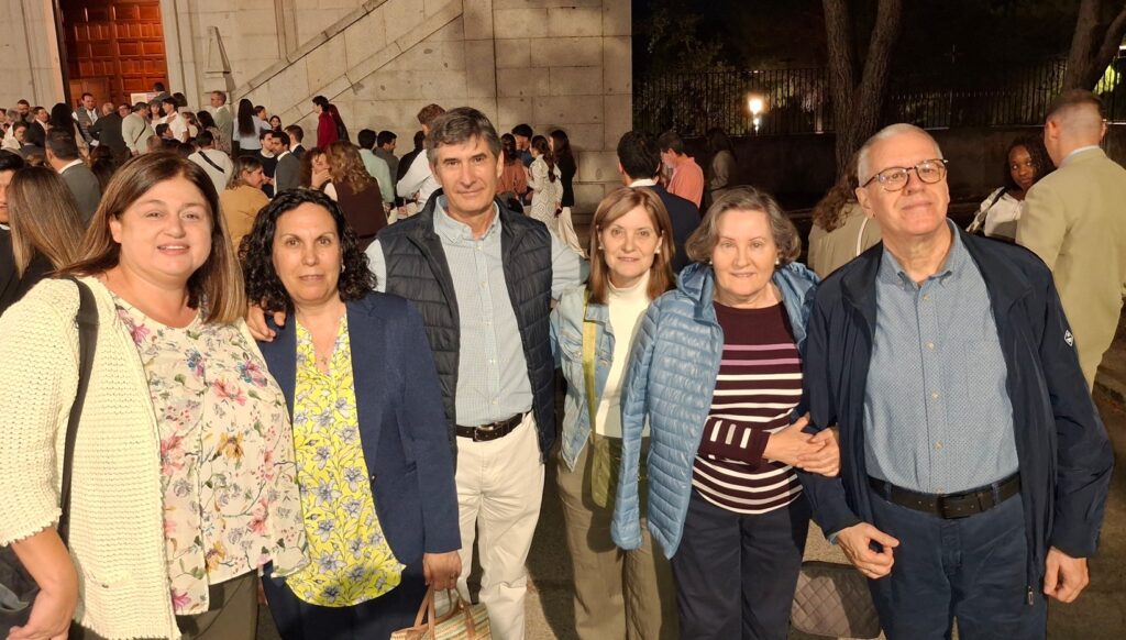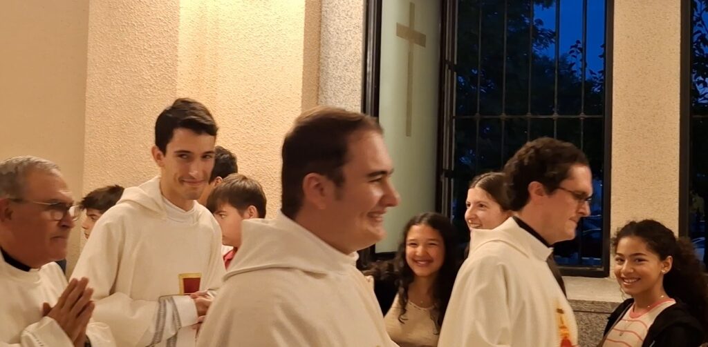 Después de la ceremonia todos esperamos a los nuevos sacerdotes, en especial a Enrique que ha estado en la parroquia San Juan de Ávila hasta agosto de 2025. En la explanada hubo tiempo de darles un abrazo y compartir unos minutos en este día tan feliz.
