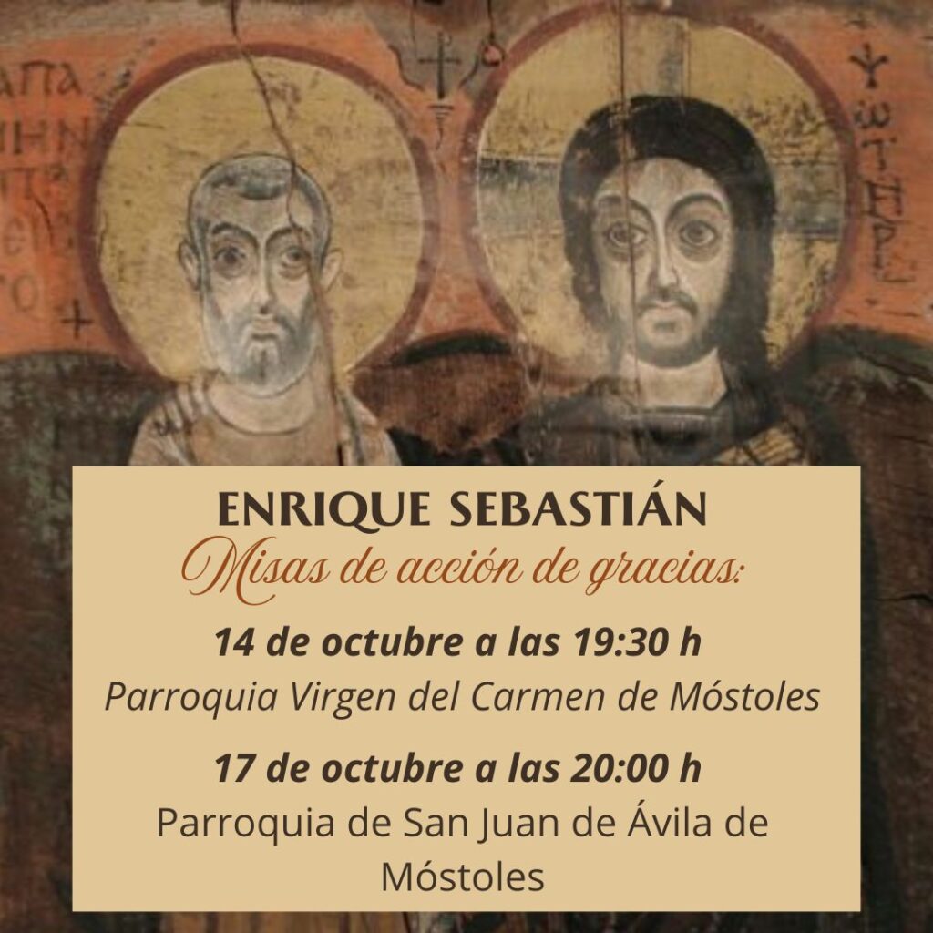 Enrique, celebrará una Misa de acción de gracias el martes 14 de octubre a las 19:30 h en la parroquia Virgen del Carmen de Móstoles.