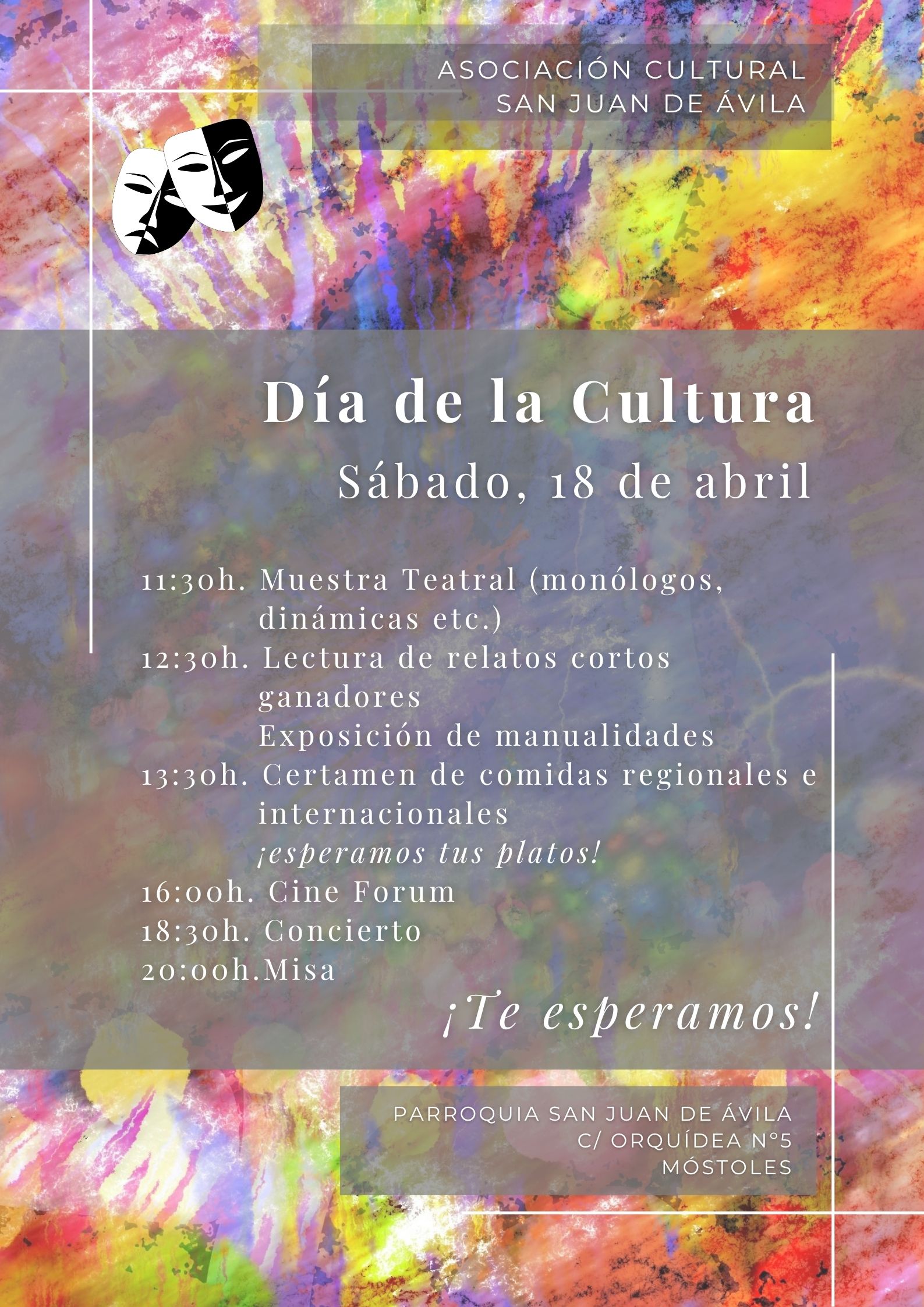 Parroquia San Juan de Ávila MóstolesVen al Día de la Cultura Publicado en/e Será el próximo sábado, 18 de abril de 2026, a partir de las 11 y media de Leer más