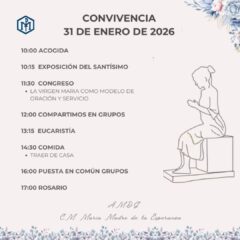 El pasado sábado 3 de febrero de 2024 la Congregación Mariana de Santa María de la Esperanza hizo su tradicional convivencia en los salones parroquiales y Leer más