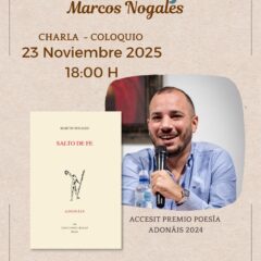 El próximo domingo 23 de noviembre de 2025 a las 18:00H podremos conversar con Marcos Nogales sobre su libro de poemas Salto de fe. ‘Salto Leer más